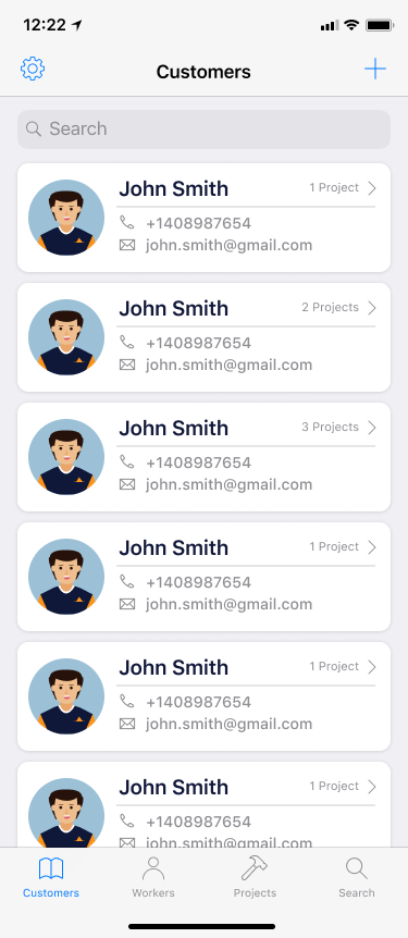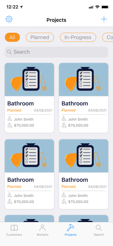 To start with we had three quite similar pages: Customer, Workers, and Projects.